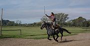 costume, using boleadoras.